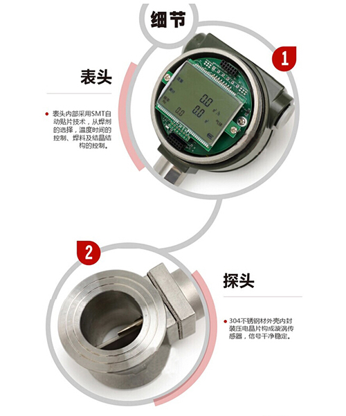 壓力損失小,量程范圍大,精度高,在測(cè)量工況體積流量時(shí)幾乎不受流體密度、壓力、溫度、粘度等參數(shù)的影響。無可動(dòng)機(jī)械零件,因此可靠性高,維護(hù)量小。采用壓電應(yīng)力式傳感器,儀表參數(shù)能長(zhǎng)期穩(wěn)定,可在-20℃~+250℃的工作溫度范圍內(nèi)工作。有模擬標(biāo)準(zhǔn)信號(hào),也有數(shù)字脈沖信號(hào)輸出,容易與計(jì)算機(jī)等數(shù)字系統(tǒng)配套使用,是一種比較先進(jìn)、理想的流量?jī)x表