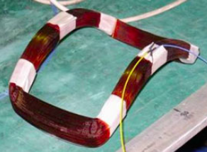 由此可見,dn32管道水流量計正常運(yùn)行需要有穩(wěn)定的磁場,而磁場正是靠傳感器線圈內(nèi)的 勵磁電流來產(chǎn)生的。勵磁線圈如圖2所示。