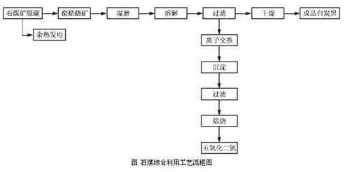 本項(xiàng)目為石煤綜合利用的項(xiàng)目?,F(xiàn)有提釩工藝產(chǎn)生大量廢渣。其主要成分為二氧化硅,但其中夾帶有大量的釩資源,釩資源利用率低,同時(shí),該廢渣中堿含量較高,如將廢渣隨意堆放,易造成環(huán)境污染。本項(xiàng)目*大特點(diǎn)在于利用現(xiàn)有提釩工藝中的提釩二次渣作為制備沉淀法白炭黑的主要原料,將廢渣中的硅資源得到充分利用。為企業(yè)創(chuàng)造了新的經(jīng)濟(jì)增長(zhǎng)點(diǎn),同時(shí),解決了現(xiàn)有提釩生產(chǎn)中造成的釩資源浪費(fèi)和環(huán)境污染問(wèn)題,此外,該項(xiàng)目利用現(xiàn)有提釩生產(chǎn)線脫碳工序中產(chǎn)生的余熱作為加熱熱源,取代了傳統(tǒng)工藝以煙煤為主要燃料的方法,即對(duì)生產(chǎn)中產(chǎn)生的余熱得到了有效合理的利用,又進(jìn)一步降低了產(chǎn)生的燃料成本,達(dá)到了節(jié)能減排,資源綜合利用的目的,工藝流程框圖如下。