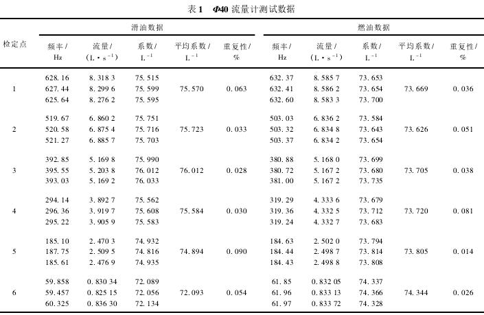 Φ40流量計測試數(shù)據(jù)如表1所示。