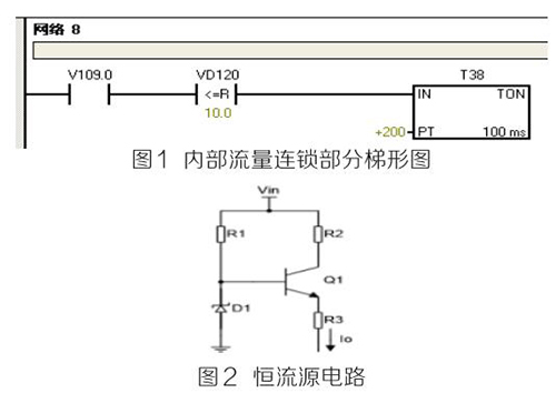(2)PLC及模塊。PLC及模塊是自動(dòng)化控制系統(tǒng)主要設(shè)備,且PLC及模塊屬于高集成高精密電子設(shè)備,保持室內(nèi)整潔舒適,可以提高自動(dòng)化系統(tǒng)運(yùn)行穩(wěn)定性。PLC及模塊硬件運(yùn)行可靠,內(nèi)部控制程序是其控制核心軟件,如PLC硬件出現(xiàn)故障或損壞一般直接更換,但原內(nèi)部控制軟件無(wú)法上傳,整個(gè)控制系統(tǒng)成失控狀態(tài)。所以其內(nèi)部控制程序在調(diào)試驗(yàn)收合格后應(yīng)及時(shí)備份并做好標(biāo)記,為以后修復(fù)PLC故障提供保障。PLC系統(tǒng)的維護(hù)技術(shù)人員需掌握一定基礎(chǔ)PLC控制邏輯原理,對(duì)準(zhǔn)確判斷PLC故障點(diǎn)有很大的幫助。例如選礦廠水泵房S7-200系列PLC自動(dòng)抽水系統(tǒng)出現(xiàn)如下故障 :觸摸屏能控制變頻器啟動(dòng)水泵抽水,但在短時(shí)間內(nèi)會(huì)自動(dòng)停泵,導(dǎo)致無(wú)法正常抽水。通過(guò)故障現(xiàn)象可初步判斷PLC及模塊硬件設(shè)備正常,主要由于某個(gè)變量有問(wèn)題導(dǎo)致連鎖停機(jī)。打開(kāi)備份PLC控制梯形圖程序進(jìn)行相關(guān)分析,原來(lái)是水流量計(jì)瞬時(shí)流量數(shù)值做了連鎖,其在一定時(shí)間內(nèi)瞬時(shí)流量不大于10m 3 /h時(shí),自動(dòng)停泵,電磁流量模擬量輸出電流值僅為4ma且無(wú)變化,確定水流量計(jì)有故障??膳R時(shí)應(yīng)急維修,模擬量模塊輸入模擬電流值10ma~20ma之間一固定數(shù)值即可恢復(fù)正常運(yùn)行。制作簡(jiǎn)單恒流源電路代替水流量計(jì)輸出的模擬電流量,實(shí)現(xiàn)解決水泵無(wú)法正常運(yùn)行的故障。