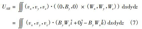 式中V為水泥漿流量計(jì)傳感器測(cè)量空間;W→為權(quán)函數(shù)。在直角坐標(biāo)系(x,y,z)中,式(5)可以轉(zhuǎn)換為