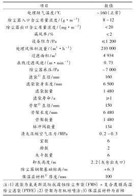 (2) 新建布袋除塵及氣力輸灰管道式渦街流量計(jì)。采用長(zhǎng)袋低壓脈沖袋式(外濾式)除塵器,煙氣體積流量為 210 000 m 3 /h,初 始 含 塵 質(zhì) 量 濃 度 為 8 ~12 g/m 3 ,除塵占地面積為 20 m 2 (5 m ×4 m)。除塵器主要由本體、壓縮空氣系統(tǒng)、控制系統(tǒng)、輸灰系統(tǒng)組成。除塵器后進(jìn)脫硫塔煙塵質(zhì)量濃度≤20 mg/m 3 。除塵器的總阻力≤1 200 Pa。新建布袋除塵器型號(hào)為 LCMD-4934,設(shè)計(jì)參數(shù)見(jiàn)表 2,其中清灰方式采用離線清灰,除塵器布置方式為矩形布置,電氣控制采用可編程邏輯控制器(PLC)。
