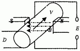 根據(jù)法拉*電磁感應(yīng)定律,即導(dǎo)電液體在磁場(chǎng)中切割磁力線運(yùn)動(dòng)時(shí),導(dǎo)體中產(chǎn)生感應(yīng)電勢(shì)(見圖1),其感應(yīng)電勢(shì)的大小與磁感應(yīng)強(qiáng)度、流體做切割磁力線強(qiáng)度等因素成正比。