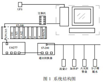 集氣站是收集氣井所生產(chǎn)天然氣的站場,在集氣站內(nèi)對天然氣進行節(jié)流降壓、加熱、調(diào)壓計量等各種工藝預處理,設備眾多且分散。為方便進行檢測和操作,必須進行統(tǒng)一的數(shù)據(jù)采集,在監(jiān)控臺進行數(shù)據(jù)的管理。集氣站設備主要包括加熱爐、衛(wèi)生型渦輪流量計、分子篩、火災報警盤,以及供電設備 UPS 等,這些不同廠家的設備基本都支持Modbus 協(xié)議,通過 Modbus 通訊可以將這些數(shù)據(jù)采集。為了有效降低成本,設計了如圖 1 所示的系統(tǒng)。系統(tǒng)采用西門子 S7-300 控制器,通過以太網(wǎng)連接上位機監(jiān)控軟件,再通過 MP277 連接S7-200 的方式。S7-200 控制器自帶 RS485 接口,能夠進行 Modbus 通訊,采集現(xiàn)場各種設備數(shù)據(jù)。*后通過以太網(wǎng)通訊將設備數(shù)據(jù)上傳至監(jiān)控軟件,方便操作人員進行監(jiān)控,該方案簡單有效,能夠?qū)崿F(xiàn)集氣站內(nèi)設備的狀態(tài)監(jiān)控,數(shù)據(jù)處理,有效的進行天然氣的生產(chǎn)工作。