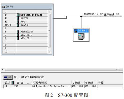 S7-300 控制器與 S7-200 控制器之間的通訊是實現(xiàn)系統(tǒng)數(shù)據(jù)采集的關(guān)鍵,EM277 可以方便的實現(xiàn) S7-300 與 S7-200 之間的 PROFIBUS DP 通訊,只需要在 STEP7 中進行 S7-300 控制站的組態(tài),簡單配置 EM277 設備。選中 STEP7 的硬件組態(tài)窗口中的菜單 Optionà Install new GSD,導入 SIEM089D.GSD 文件,安裝 EM277 從站配置文件。導入 GSD 文件后,在右側(cè)的設備選擇列表中找到 EM277 從站,根據(jù)需要的通訊字節(jié)數(shù),選擇一種通訊方式。本文中需要通訊的數(shù)據(jù)量比較大,選擇了*大的 64 字節(jié)輸入/64 字節(jié)輸出的配置。S7-300 的硬件下載完成后,將 EM277 的撥位開關(guān)撥到與以上硬件組態(tài)的設定值一致。