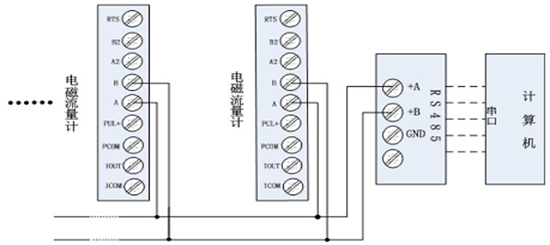 手操器與測(cè)水流量計(jì)連接如下圖所示: