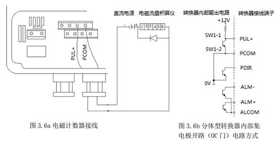 1.5 頻率(脈沖)、上下限報警、流向標(biāo)示等輸出均為集電極開路的電平輸出信號。