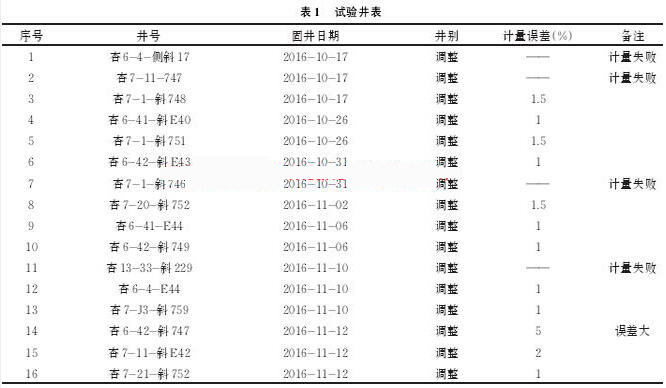 通過現場多口井試驗,試驗井如表1所示。污水流量計可以較為準確地計量水泥車上水總量,防止替空、留水泥塞事故的發(fā)生。